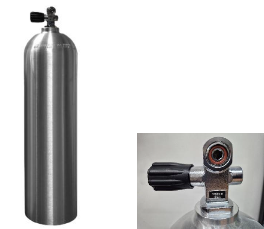 Os cilindros HD são confeccionados em liga de alumínio, com pressão de trabalho de 207 ATM. Equipados com torneira tipo K cromada em latão, com válvula de segurança e montagem direita, podem ser acoplados a reguladores Yoke ou DIN (bastando retirar o conversor).